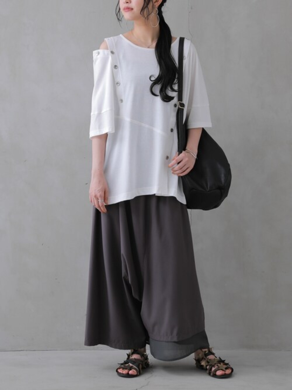 osharewalker staff(osharewalker ZOZO店)のその他パンツ「『異素材使いアシンメトリーパンツ』」を使ったコーディネート
