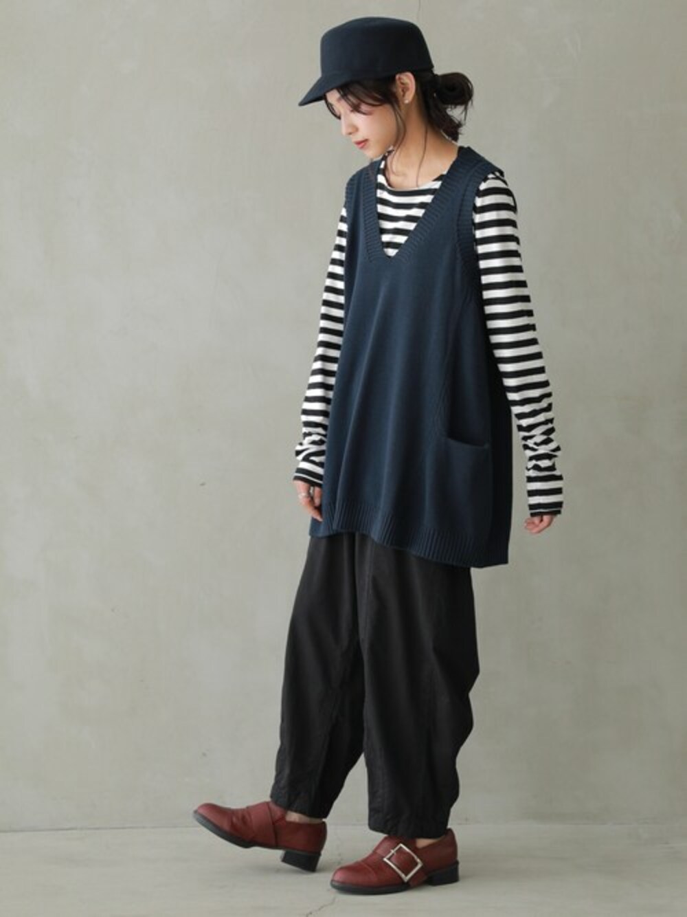 osharewalker staff(osharewalker ZOZO店)のベスト「【廃盤】『Vネックコットンニットベスト』」を使ったコーディネート