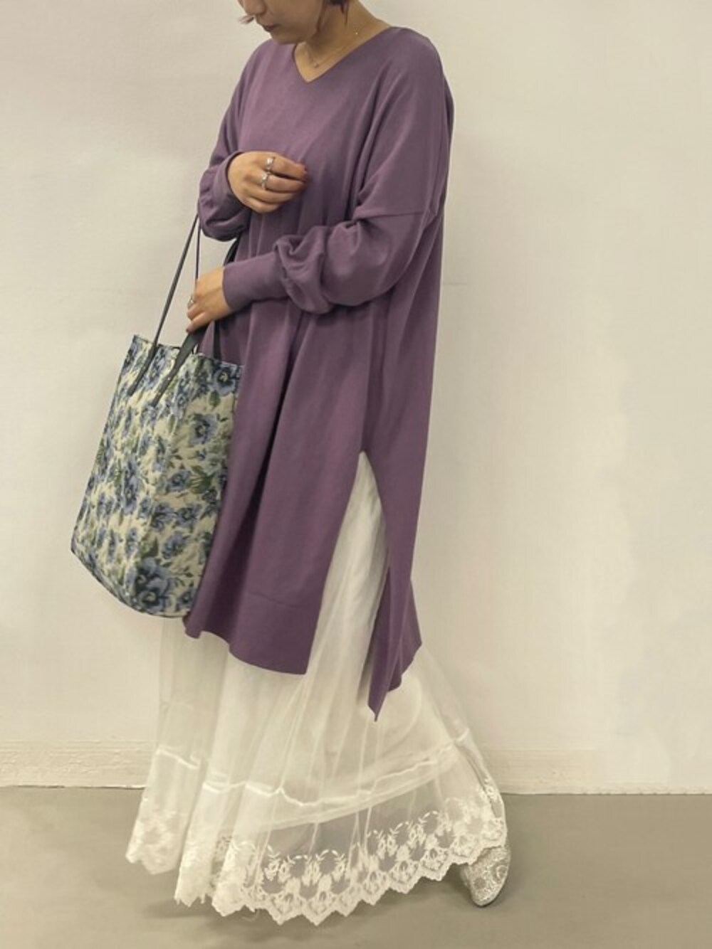 コットン100%素材のニットチュニックは これからのシーズンにおすすめです◎ ペチワンピとレイヤードして、 ゆるっと楽にコーデが決まります❁