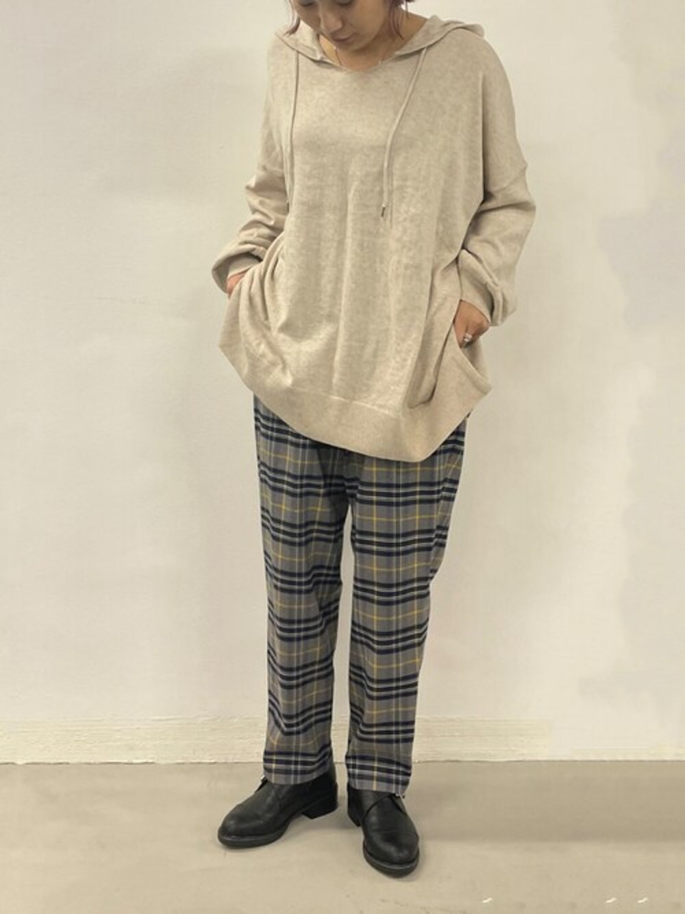 パーカーにチェックパンツを合わせた ボーイズライクなコーデにしました。 足元はローファーシューズを合わせて マニッシュ感をプラス❁
