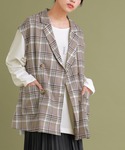 ロンTにチェック柄のジレベストを合わせて★ 楽にまとまるコーデです。