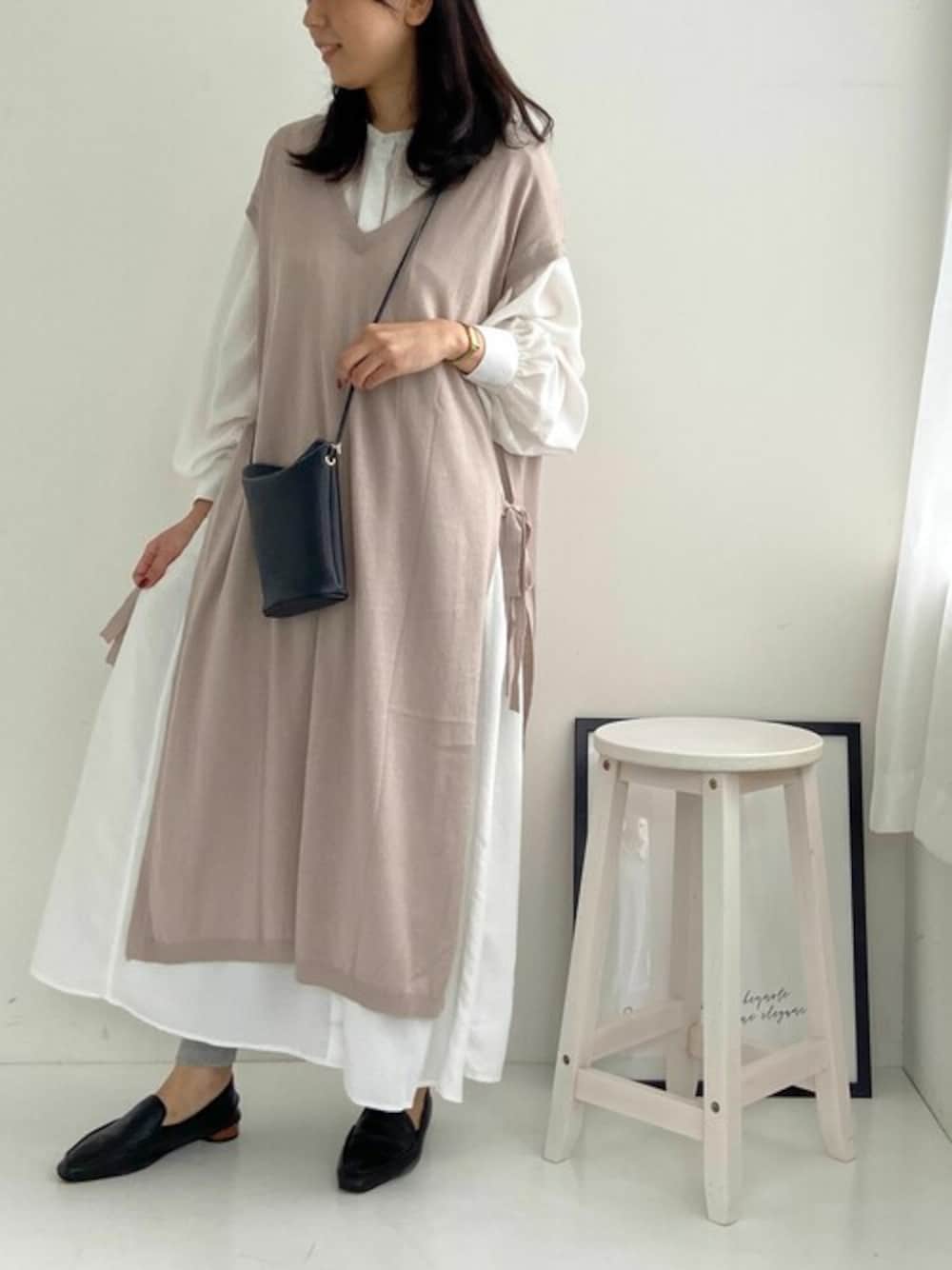 osharewalker staff(osharewalker ZOZO店)のベスト「【廃盤】『前後2wayサイドリボンロングニットベスト』」を使ったコーディネート