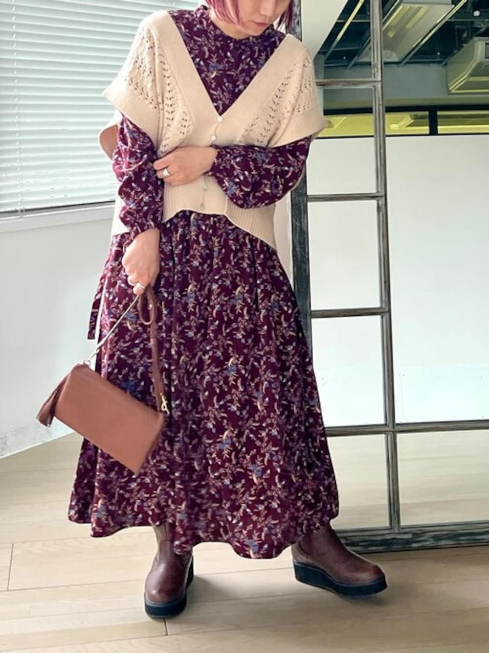 osharewalker staff(osharewalker ZOZO店)のワンピース「【廃盤】『ニュアンスフラワーワンピース』」を使ったコーディネート