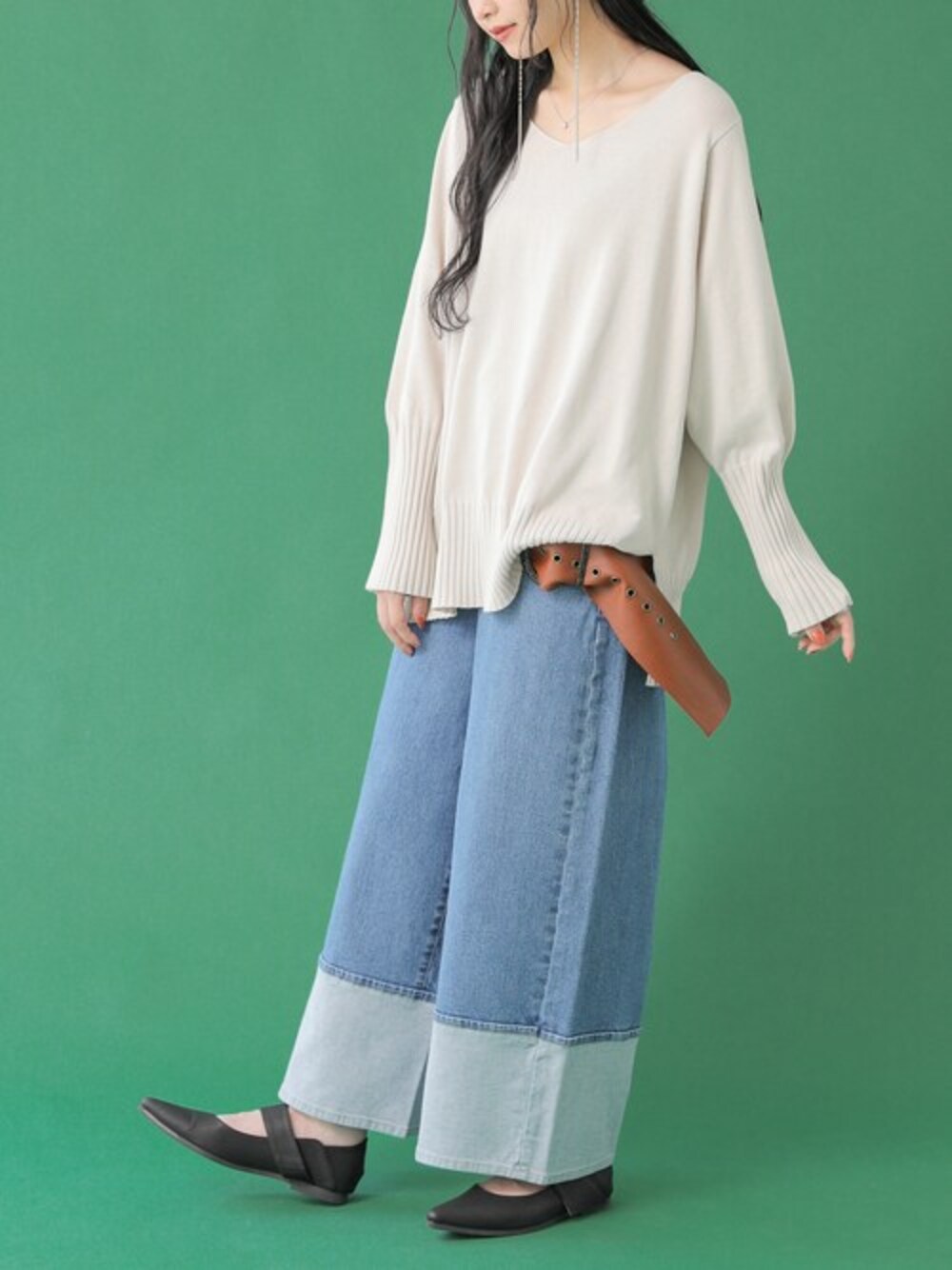 osharewalker staff(osharewalker ZOZO店)のデニムパンツ「【廃盤】『裾折り返し風デザインワイドデニムパンツ』」を使ったコーディネート