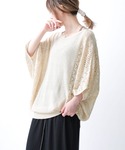 繊細な透かし柄デザイン&ドルマンシルエットで差がつく透かし編みニット。 鹿の子編みの身頃に、様々な編み柄を組み合わせた、表情豊かなサマーニットです。
