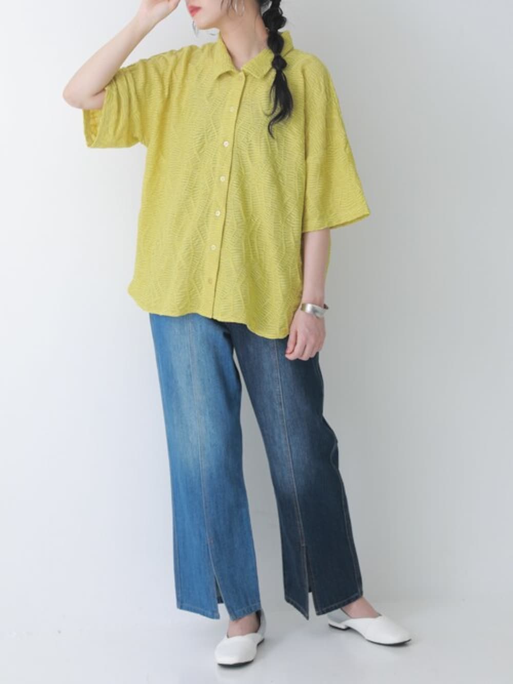 凹凸感のあるジオメトリック柄生地が、着るだけでポイントになる半袖シャツ。 伸縮性のあるカットソー生地で、着心地が良くラフに着られる。 さらりとした肌触りで快適な着心地のカットソー生地を使用しています。