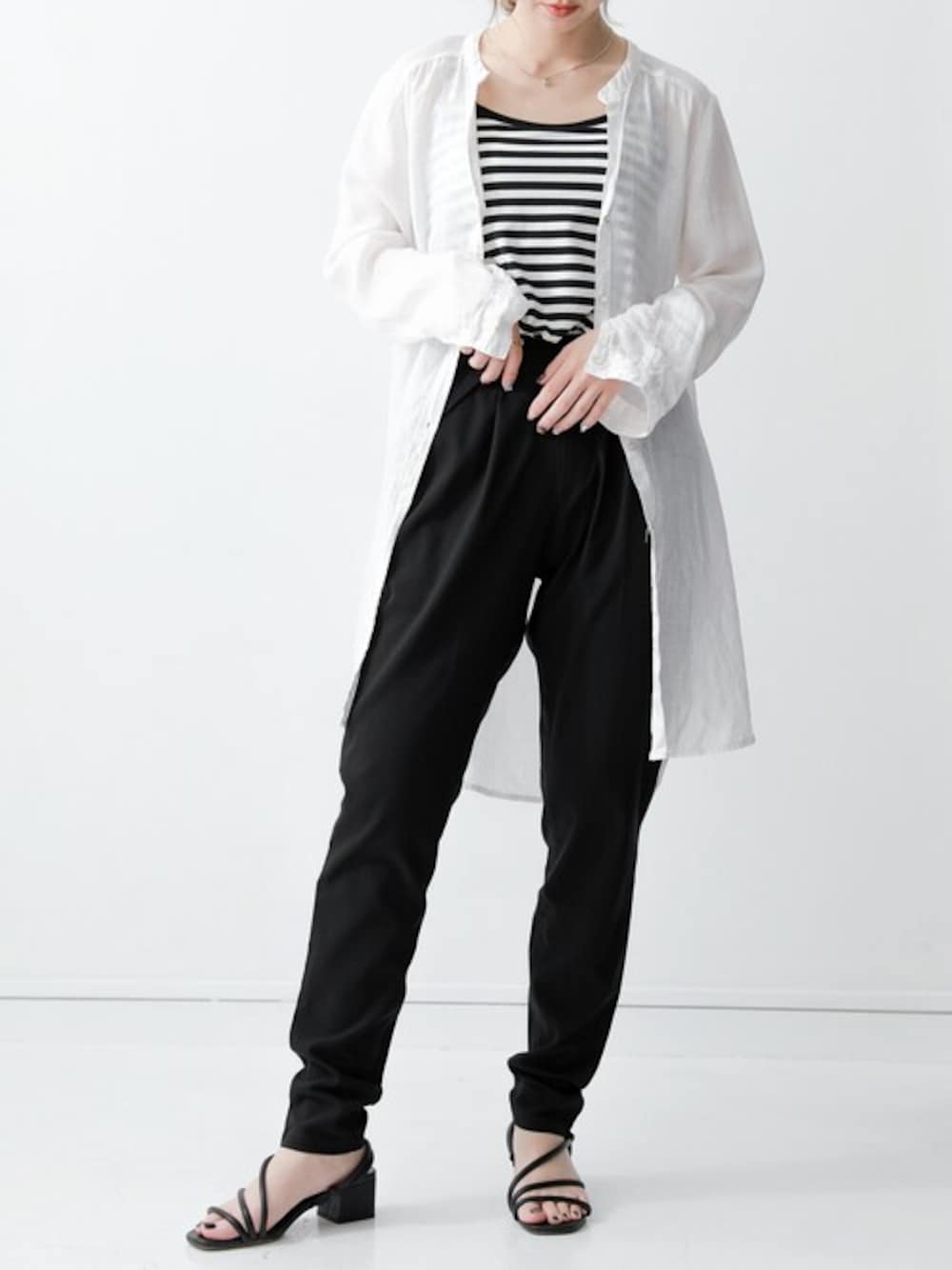いつもイイね&閲覧ありがとうございます🙇 本日は大人めモノトーンコーデのご紹介✨ きちんと感のあるテーパードだから、いつもと違ったオシャレでかっこいい着こなしの完成です🙌 インナーにはボーダーを入れることで、カジュアルモードな装いに◎ この夏一押しのコーデです🥰