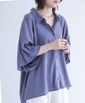 さらりとした落ち感のある生地に立体タックが入ったスリーブデザインのブラウス。 ひらり袖でも甘くなりすぎないよう、シャツ襟でシャープな印象に。 袖の内側テープが作る立体タックのひらり袖が、気になる二の腕をカバーします◎