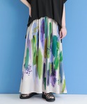 配色×デザインにこだわり抜いた、オリジナルのアートプリントスカート。 シンプルなアイテムと合わせるだけで、お洒落見えする主役級アイテムです。 トップスはひんやり心地よい接触冷感アイテムで、着るだけでこなれ感が出ます◎