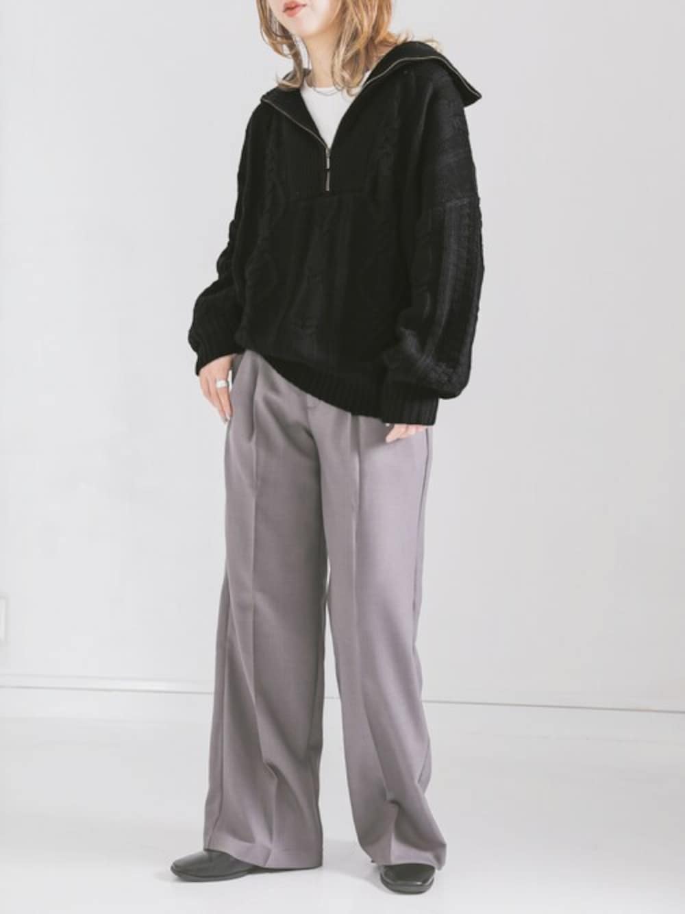 osharewalker staff(osharewalker ZOZO店)のニット/セーター「『ハーフジップデザインケーブルニット』」を使ったコーディネート