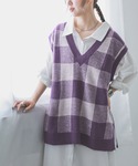 osharewalker staff(osharewalker ZOZO店)のベスト「【廃盤】『ギンガムチェック柄ジャカードニットベスト』」を使ったコーディネート