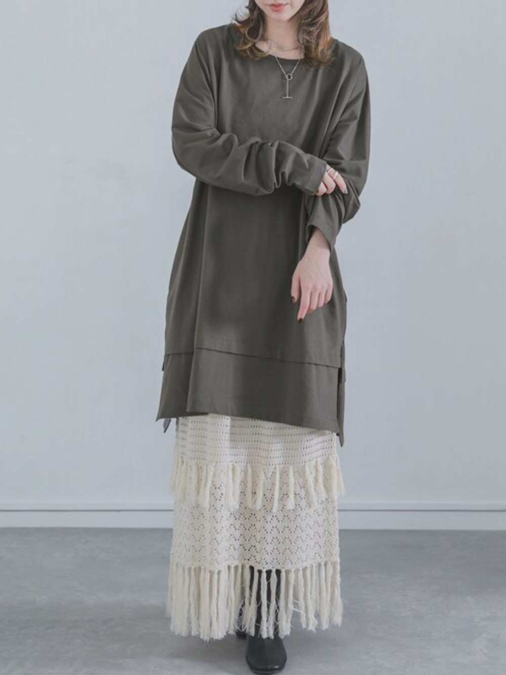 シンプルに見える服ほどこだわりたい。 ゆるっと魅せるリラックススタイルを提案する。 さらっと一枚でコーデが完成するシンプルなロングTシャツ。 スリットやさりげないディテールがポイントになる長袖カットソー。 広がりすぎずゆとりのあるサイジングで、一枚でも重ね着でもおしゃれに決まる。 両サイドには便利なシームポケット付き。 細部にまでとことんこだわりました。