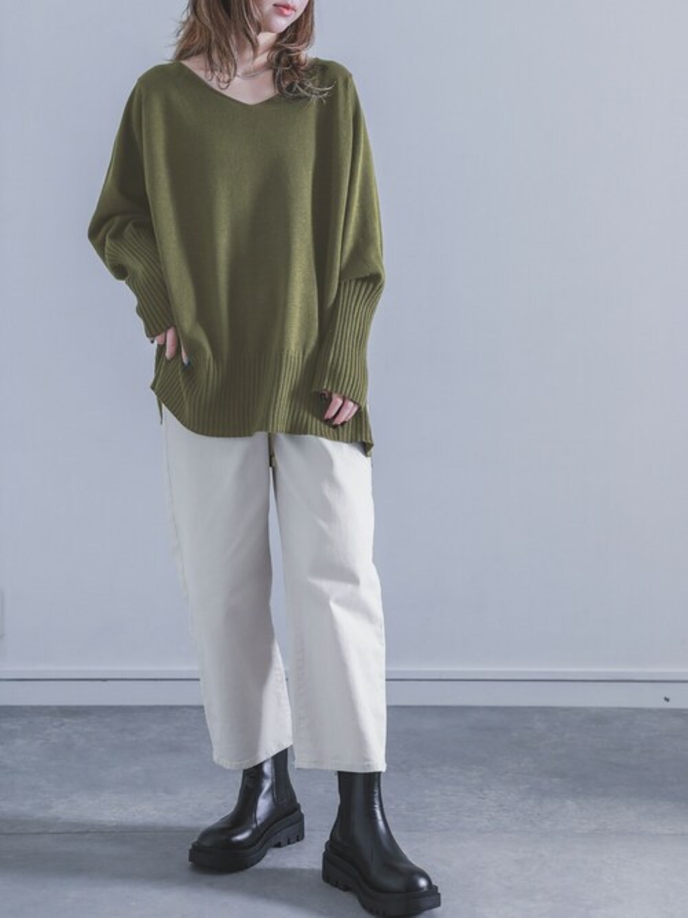 osharewalker staff(osharewalker ZOZO店)のニット/セーター「【廃盤】『ロングリブVネックコットンニット』」を使ったコーディネート