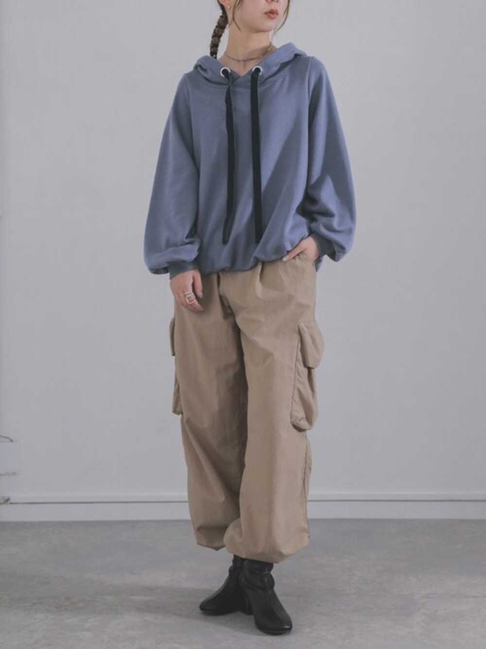 ゆるっとラフで楽にお洒落見えを叶える♪ 手軽にお洒落を楽しめる頼りになる定番パーカー。 ラフでお洒落なフードデザインなのに、アウターの下に着てもすっきり決まる。 首周りはベロアリボンと大きめのハトメデザインがお洒落のアクセントになるから、一着でコーデが映える優秀アイテムです。