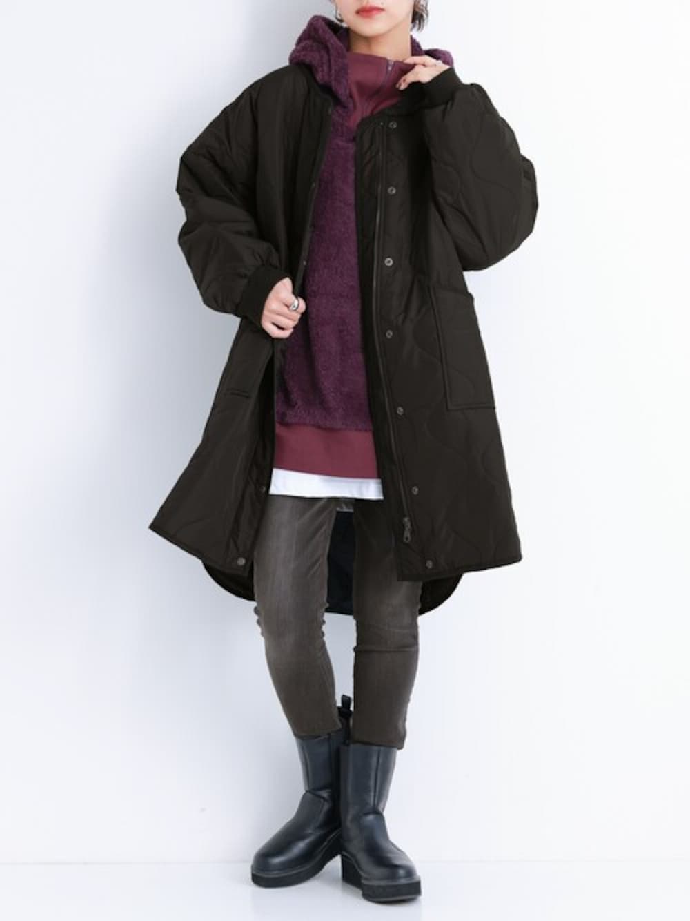 osharewalker staff(osharewalker ZOZO店)のノーカラーコート「【廃盤】『キルティングミドル丈コート』」を使ったコーディネート