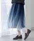 裾に向かって絶妙な色の変化を表現した、こだわりのオリジナルグラデーションプリントが新登場! 裏地との丈差で生まれる透け感が印象的なチュールスカートです♪