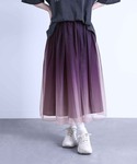 裾に向かって絶妙な色の変化を表現した、こだわりのオリジナルグラデーションプリントが新登場! 裏地との丈差で生まれる透け感が印象的なチュールスカートです♪