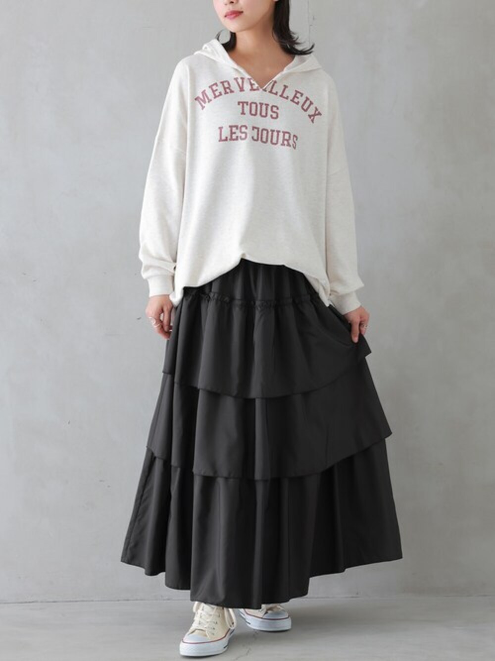 osharewalker staff(osharewalker ZOZO店)のスカート「『3段ティアードスカート』」を使ったコーディネート