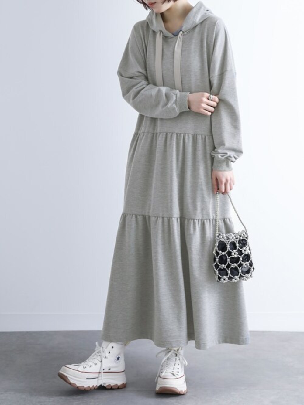 osharewalker staff(osharewalker ZOZO店)のワンピース「『ティアードパーカーワンピース』」を使ったコーディネート