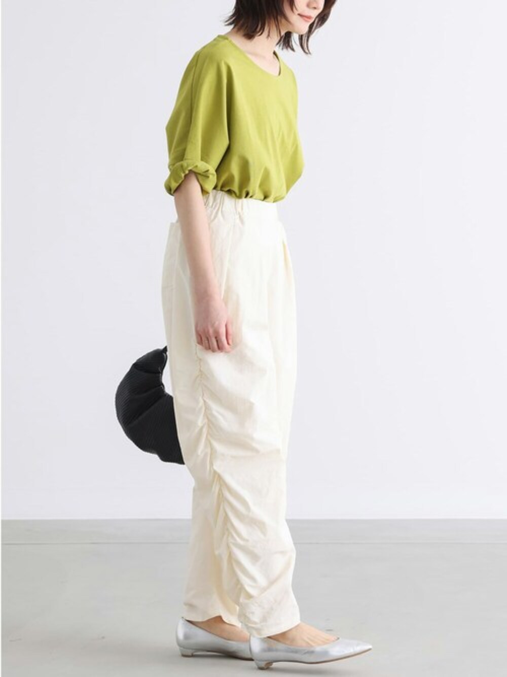着回し定番Tシャツ。 デコルテがきれいに見える程よいUネックラインで首元スッキリ。 体のラインを拾いにくい、こだわり抜いたゆるラフシルエット! 抜け感のあるサイドスリットに加え、ヒップ周りがカバーできる着丈に調整しました。