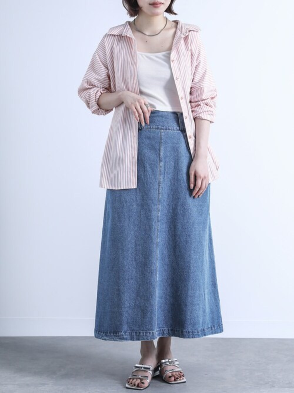 osharewalker staff(osharewalker ZOZO店)のデニムスカート「【廃盤】『風合いデニムロングスカート』」を使ったコーディネート