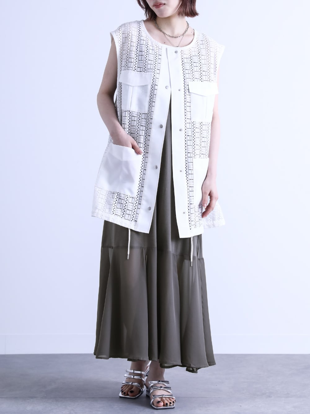 osharewalker staff(osharewalker ZOZO店)のワンピース「『裾シフォンフレアペチワンピース』」を使ったコーディネート