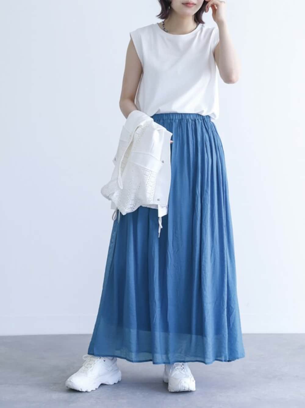 着回しできる『ふわさらロングスカート』のご紹介です。 軽やかな生地感で繊細にギャザーをよせたフレアスカートは、ウエストゴムでストレスフリー♪ ふわりと軽やかに女性らしさが増しますよ♪ ぜひチェックしてみてくださいね。
