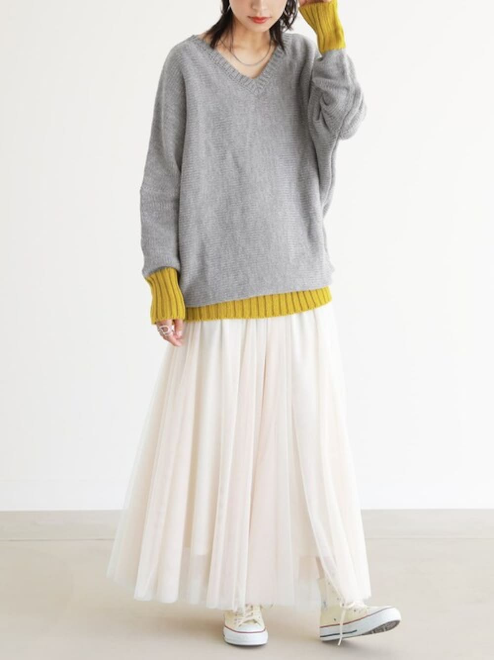 袖口&裾の配色切り替えが目を惹くニット。 ゆるっとしたシルエットでラフに着用できる一枚です。 スカート・パンツどちらにも合わせやすく、ゆるっとカジュアルなスタイリングをお楽しみいただけます。