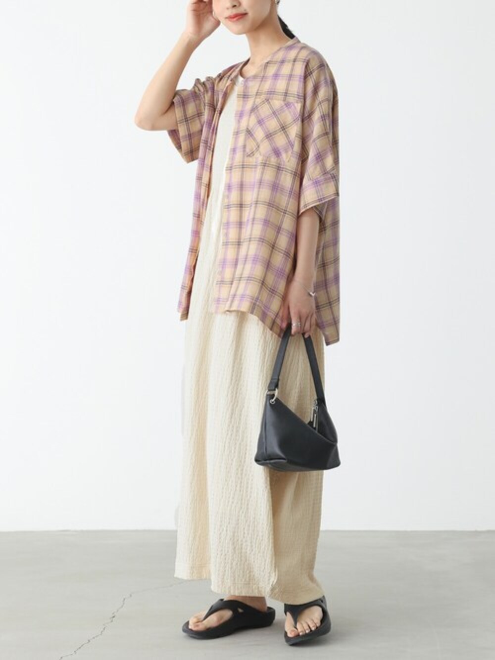 配色感がお洒落な『マドラスチェック柄シャツ』 胸ポケットはバイアス使いにして変化をつけ、バンドカラーですっきりと見え♩ 両サイドのスリットがこなれ感をプラスします。 ぜひチェックしてみてくださいね🙌