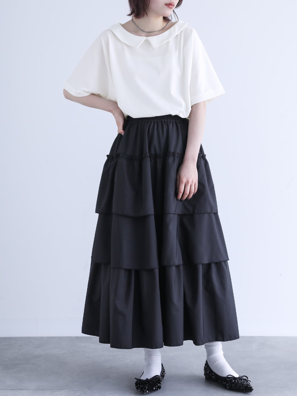 osharewalker staff(osharewalker ZOZO店)のスカート「『3段ティアードスカート』」を使ったコーディネート
