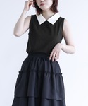 シャツ襟がポイントになったタンクトップ。 そのまま一枚ではもちろん、羽織りやサロペットなどのインに合わせても襟元がポイントになった着こなしをお楽しみいただけます。