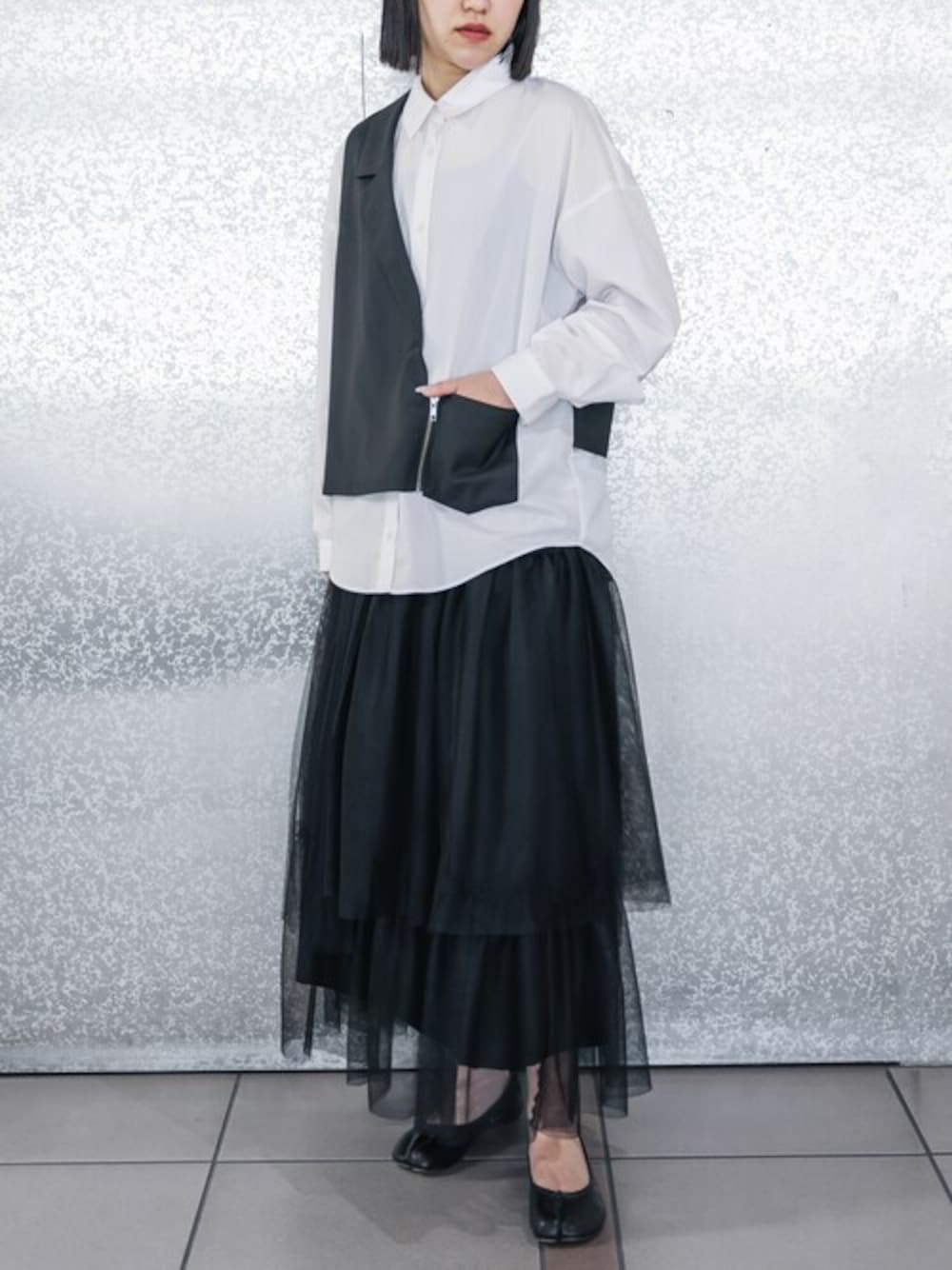 チュールプリーツをアシンメトリーに、贅沢に重ねたデザインスカート。 さらりと肌触りの良い裏地付きで、オールシーズン活躍するアイテム。 デザイントップスやシャツ・ジレなどに合わせてモードにかっこよく、可愛くも着られます○