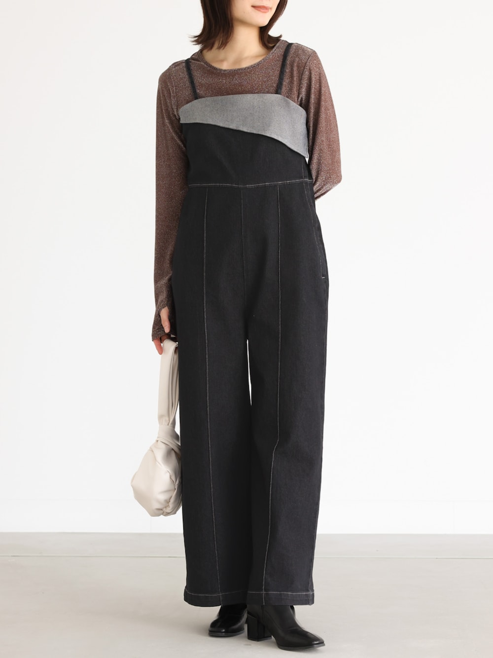 ロンTやニットと合わせたカジュアルなコーデから、シャツやブラウスと合わせた女性らしい着こなしまで、幅広く着回しがきくアイテム。 シェイプしたシルエットや胸部分の折り返しデザインで、幼く見えずお洒落な着こなしができる大人のためのサロペットです。