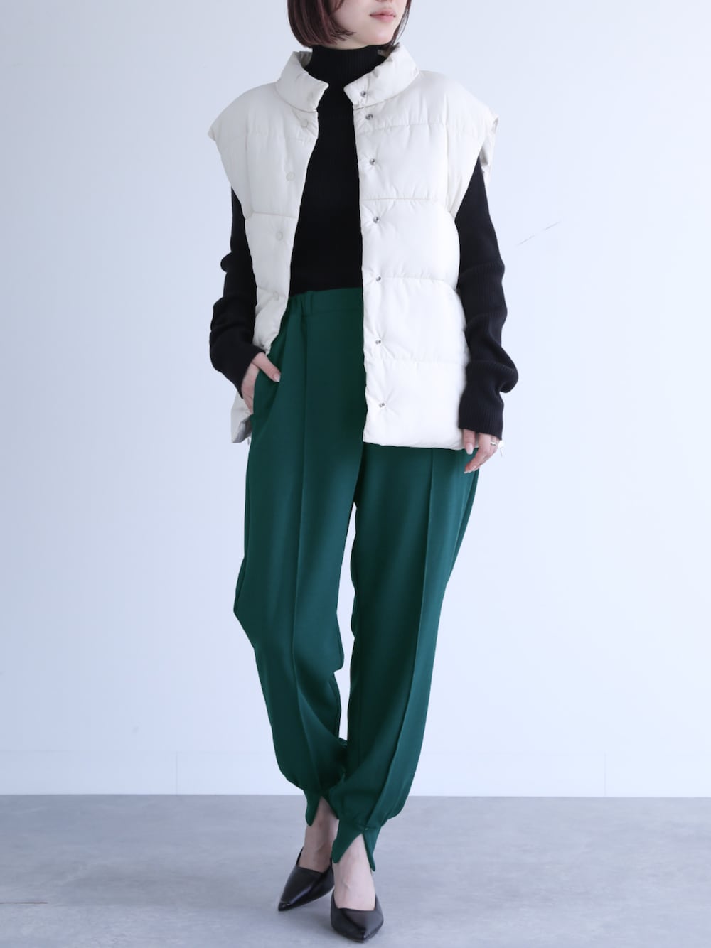 『穿くだけで大人印象溢れるパンツ。』 センターピンタックと裾スリットで大人の抜け感を惹き出すジョガーパンツ。 キレイめな着こなしからカジュアルな着こなしもお任せ♪ 楽ちんなのにキレイ見えを実現する優秀アイテムです。