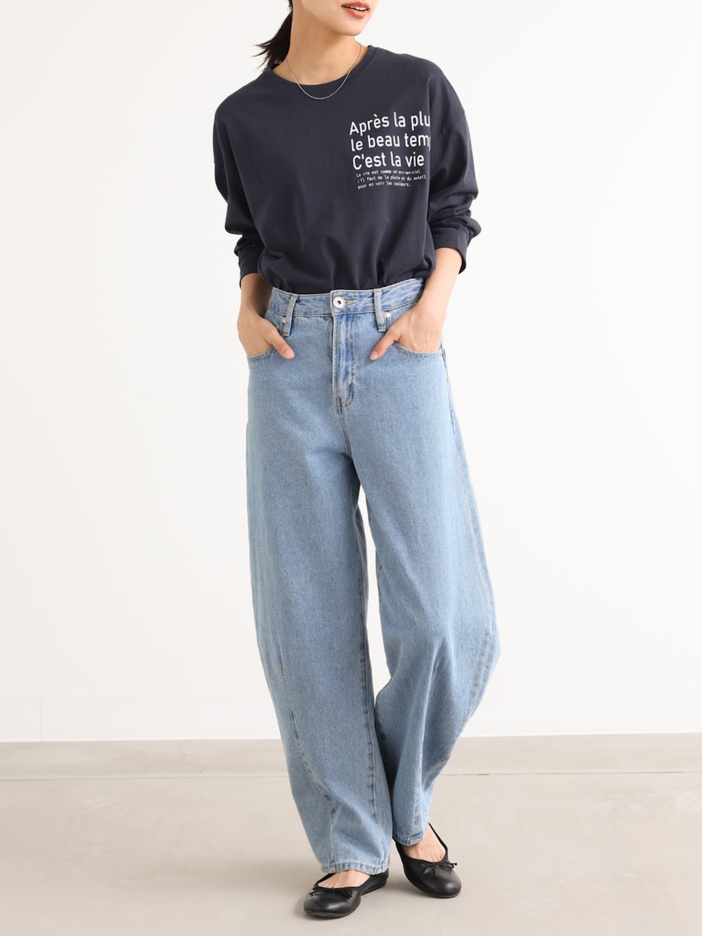 ゆるっと着られるテキストプリントロンT。 デニムやカジュアルなボトムスはもちろん、きれいめなボトムスと合わせてもバランスの良いスタイリングに。 ウエストインしやすく、スリット入りなのでアウトもお洒落に決まります。