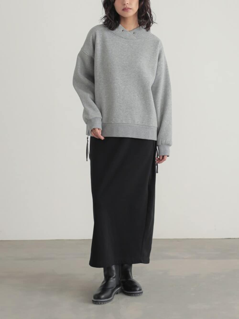 フード風の襟がアクセントになる「裏起毛プルオーバー」のご紹介です✨ 寒い季節に活躍する、あたたかな裏起毛生地を使用し、 程よい厚みながらも、柔らかくさらりとした肌触りが特徴のスウェットです。 ゆるっとしたシルエットが体型カバーを叶えつつ、アウターのインに着てもすっきり決まるアイテムです!