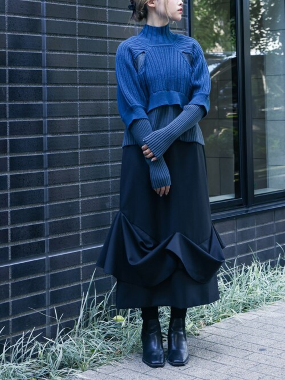 『kOhAKU』アイテムから、ショート丈のニットをレイヤードしたような ドッキングデザインのトップスのご紹介です! ハイネックで首までしっかりと暖かく、ショート丈を重ねたように見えるデザインなので パンツでもスカートでもスタイルを良く見せてくれますよ🎵