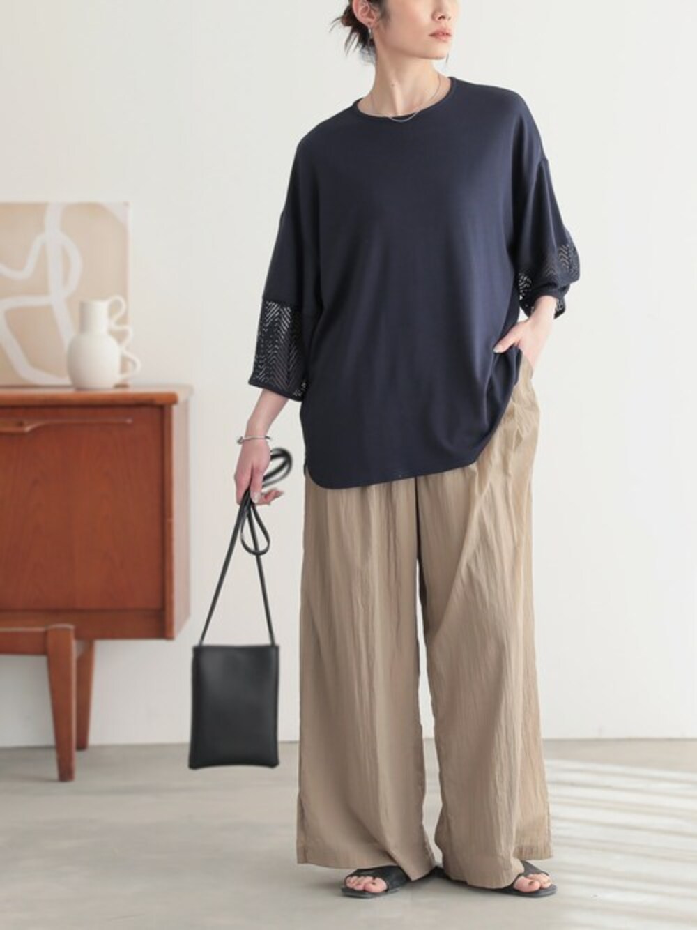 osharewalker staff(osharewalker ZOZO店)のTシャツ/カットソー「『七分袖レースランタンカットソー』」を使ったコーディネート