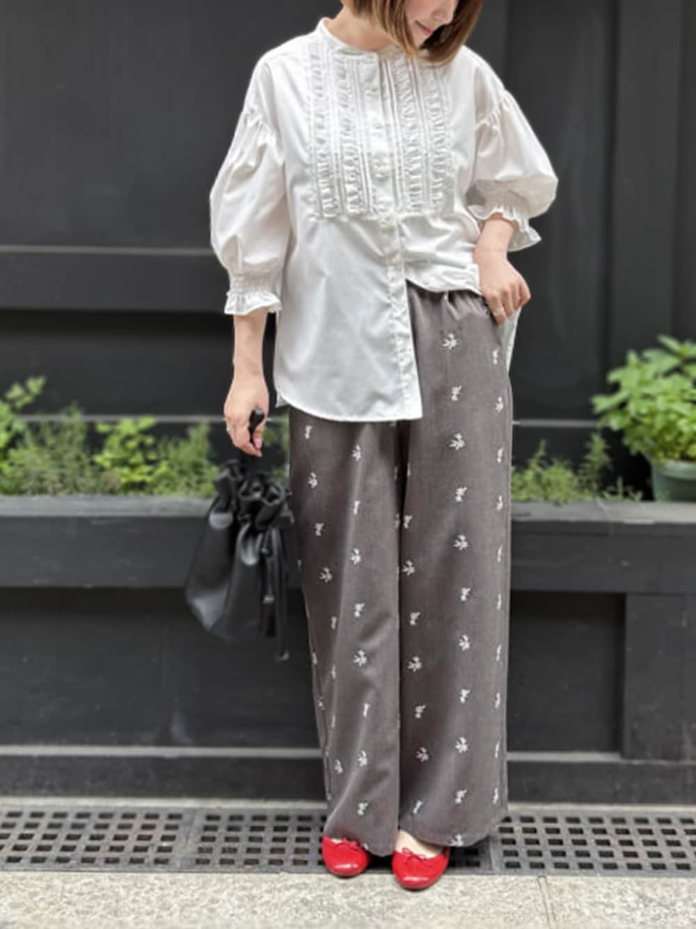 osharewalker staff(osharewalker ZOZO店)のスラックス「『花柄刺繍スラックス』」を使ったコーディネート