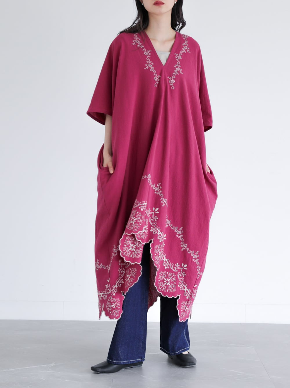 細身のボトムと合わせたカジュアルスタイルは刺繍の柔らかな雰囲気とのバランスで甘辛ミックスな仕上がりに。 透け感のあるスカートをレイヤードする着こなしもおすすめです!