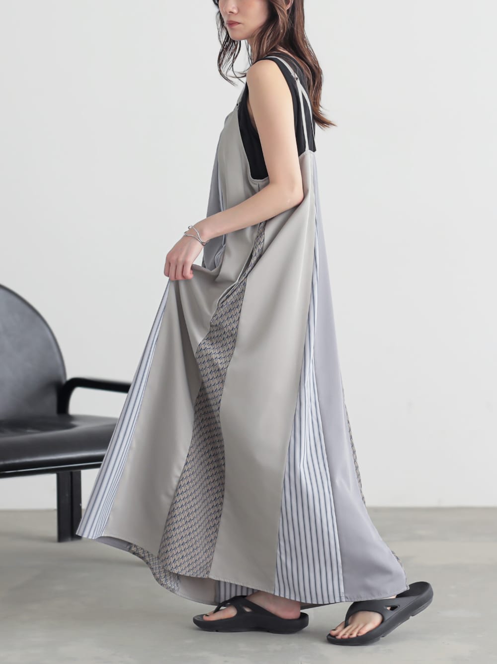 体型を選ばず着られるAラインシルエット。 肩紐調節でお好みの着丈に対応可能。 幅広い身長の方にご着用していただけます☺