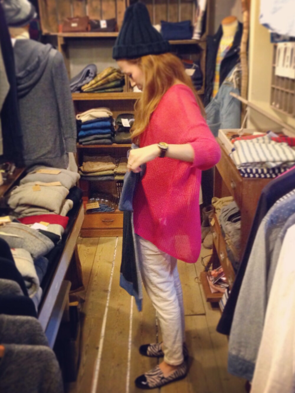 ゼブラ柄の靴に白パンツ、ゆったりニットにニット帽(^-^)/ 今日もよく働いてくれました。 感謝感謝m(_ _)m