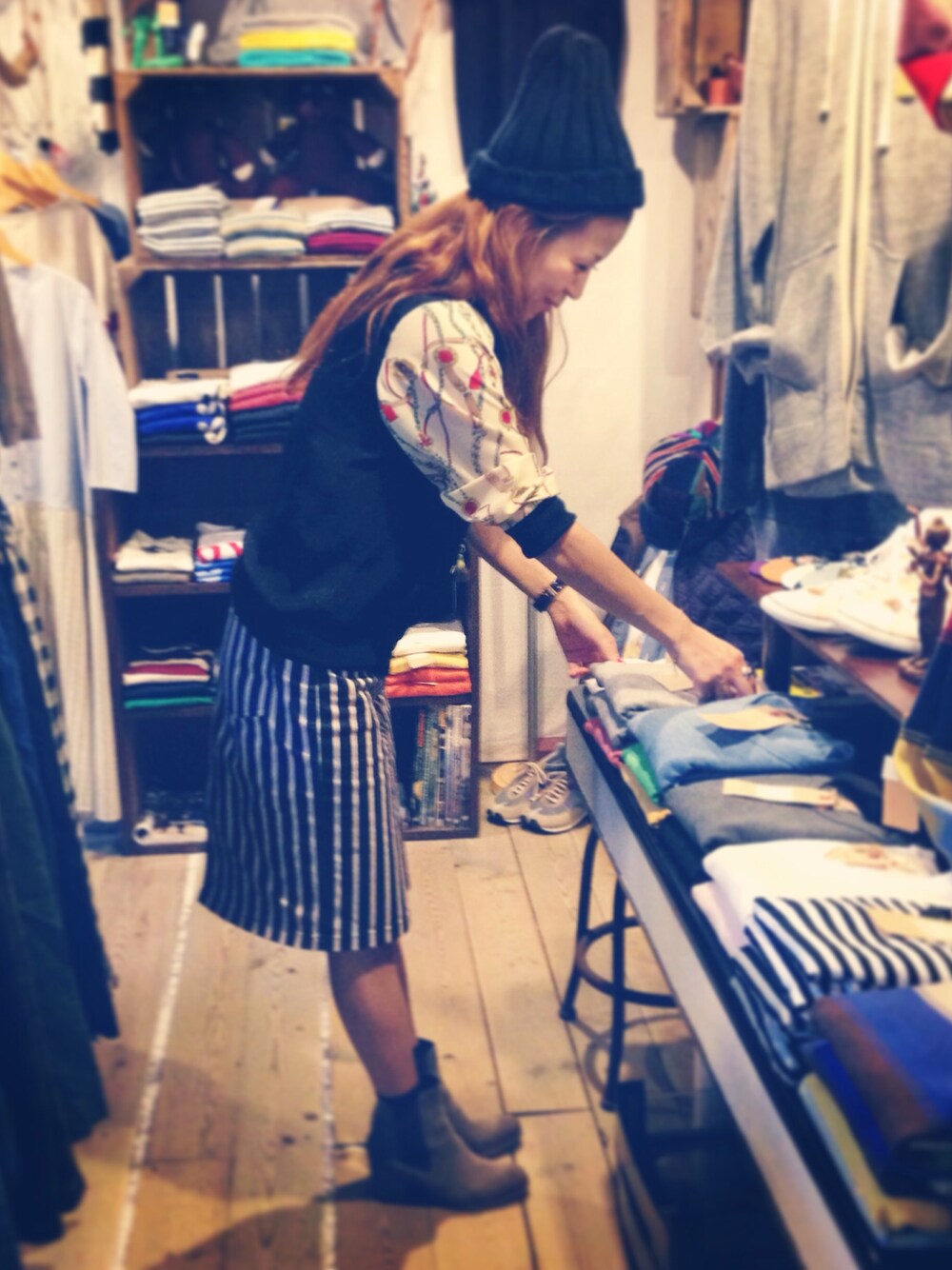 マイティスタッフ 今日の栄子さん! ショートブーツにストライプスカート、袖柄のサテンブルゾンがかわいかったです(^-^)/