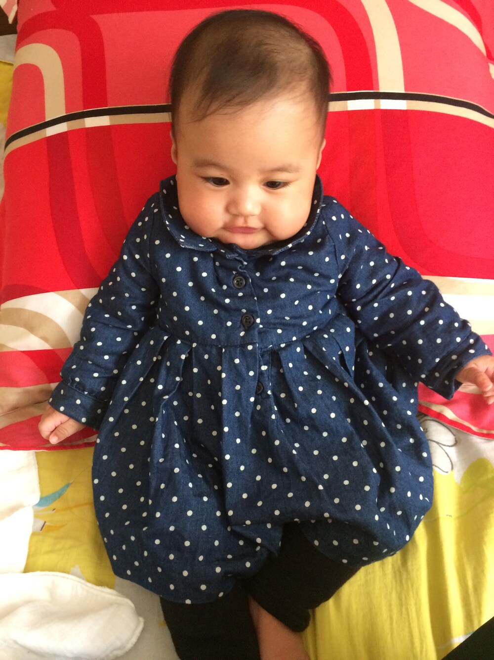 ブルー系のチュニックを着用したキッズの冬コーディネートの1枚目の写真