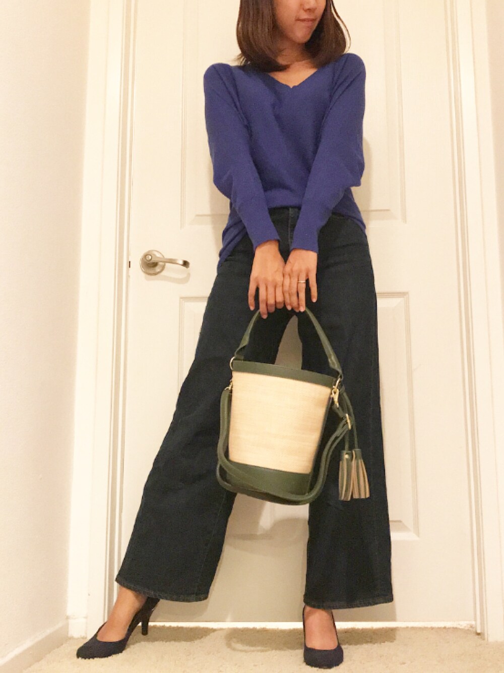 バッグはこの夏買ってやっとアメリカに届いたGUのもの👍秋冬でも使いやすいように落ち着いたカーキ選んで正解! 年中使える万能アイテムです💕