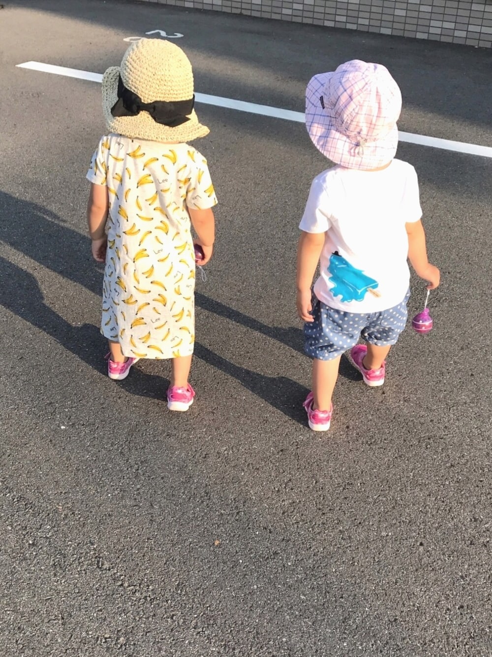 お昼にうどんを食べに行ったら、1人こぼしワンピースにお着替え・・・バラバラコーデに(⌒-⌒; ) 双子ちゃんはただでさえ荷物が多いので、着替えはかさばらないワンピースを持ち歩いてます(^o^)