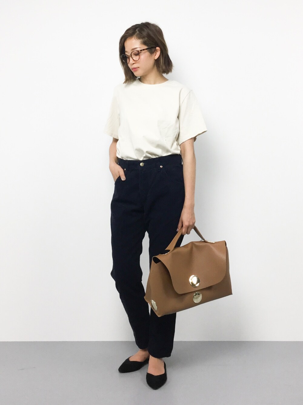 きれいめカジュアルコーデ シンプルなスタイルに個性的なバッグをプラス! バッグは、2点セットになっているので充実したアイテムです。 デザインだけでなく、開け閉めもしやすく使い勝手も良いのでオススメの一点です。