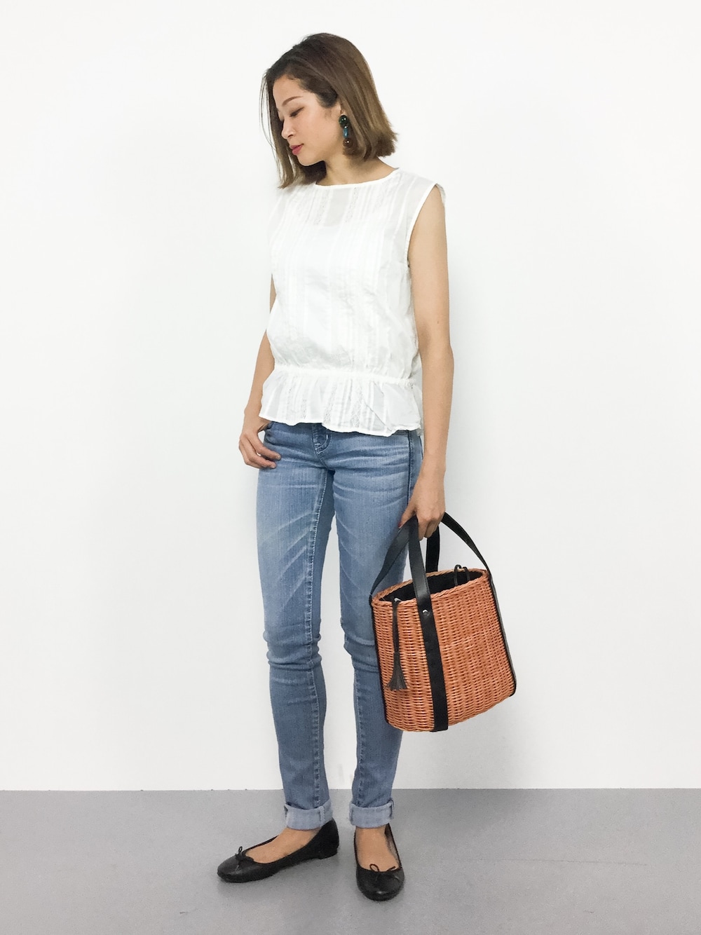 mihiroのかごバッグ「CB MIX MID カゴバッグ ◆」を使ったコーディネート