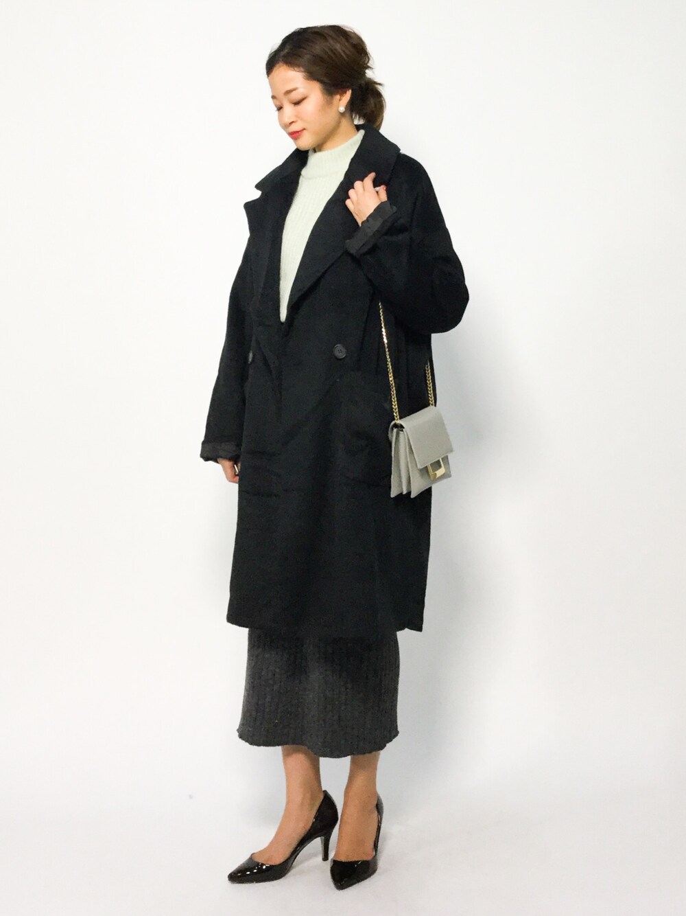 mihiroのスカート「<2018年秋冬素材で再入荷>ウエストストレッチで快適な履き心地♪リブニットミモレ丈スカート」を使ったコーディネート