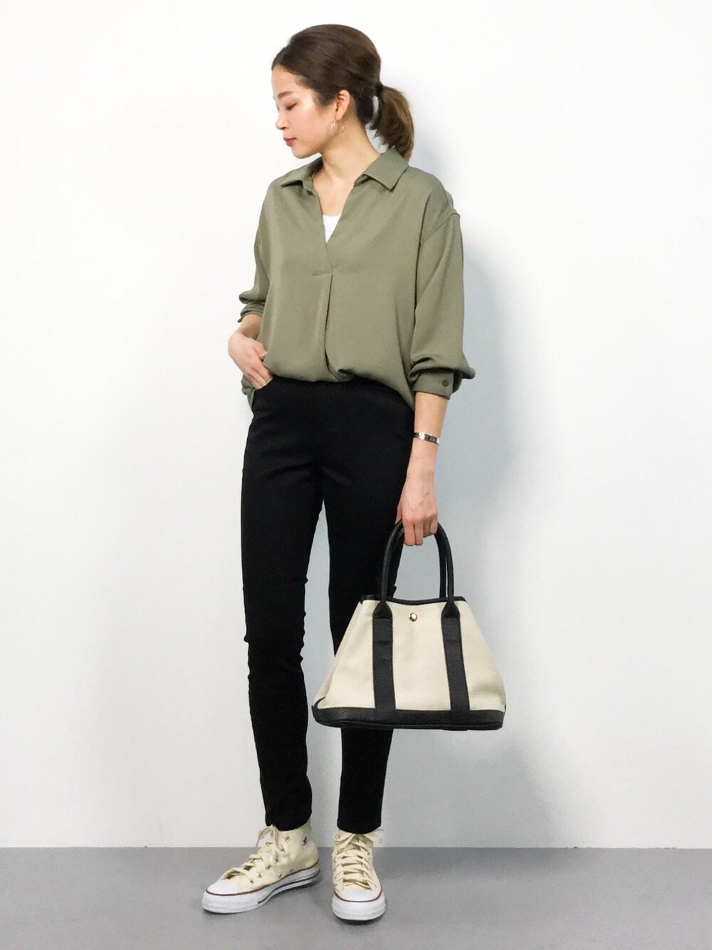 きれいめカジュアルコーデ ストレートデザインで足を綺麗に見せてくれるスキニーパンツ。 様々なアイテムと相性が良く、ストレッチが効いているのでストレスフリーな一枚♩ トップスインをしても綺麗なシルエットを演出してくれます。